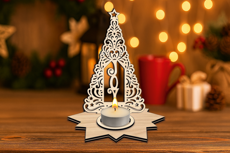 This one of a kind Christmas Tree-shaped Candle Holder with text 'Joy' inside is an unique gift and Home Decor for the Christmas Holiday! The idea is to put a tea candle with a base of up to 1.77 inches (4.5 cm) into the circle cut ring, light it up and enjoy the warmth and the joy of it during the Festivities! Keep in mind that this product is a multi-layered item, so use glue suitable for the material that you will make it from.