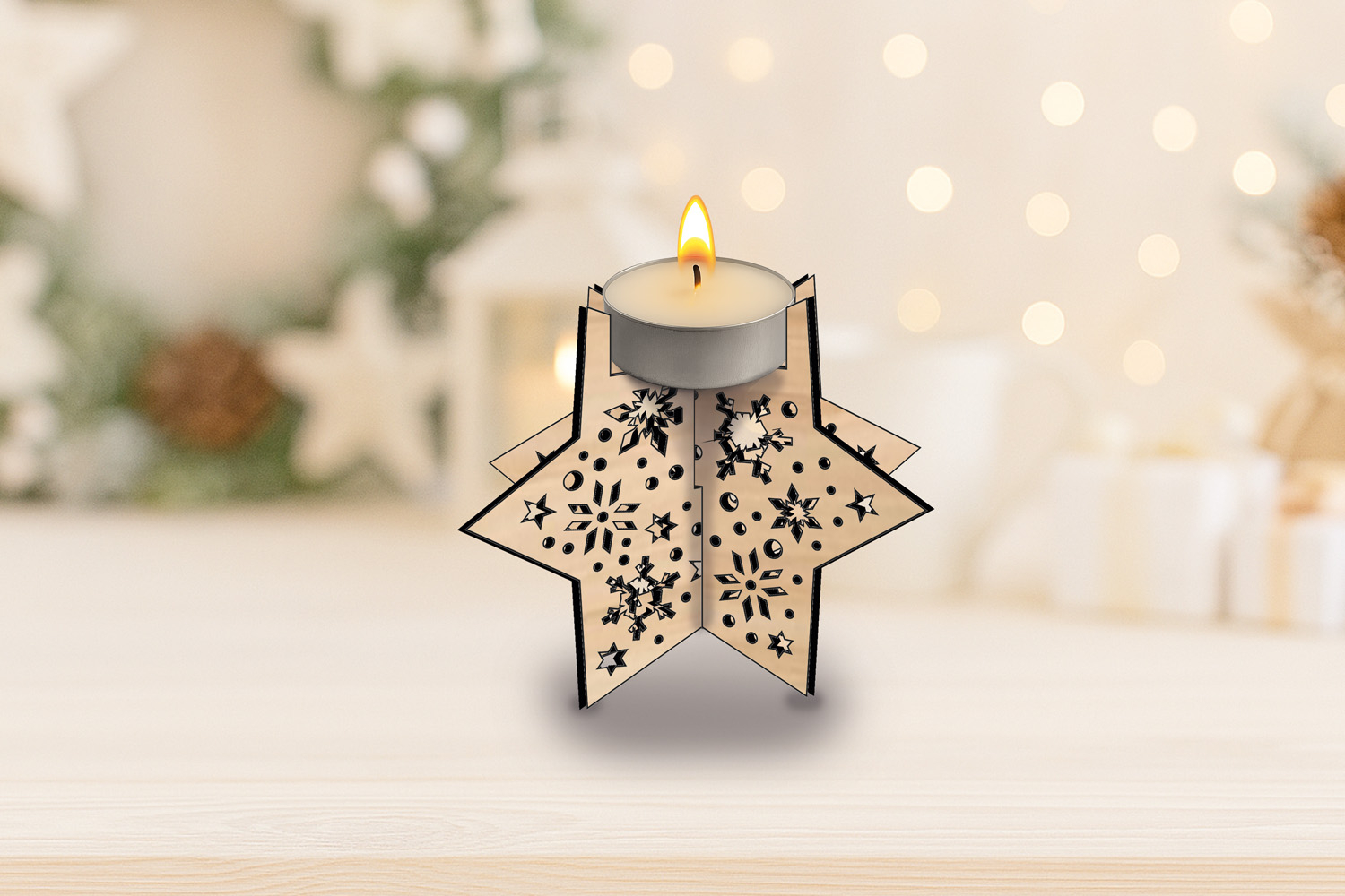 This one of a kind Christmas 3D Star Candle Holder on Snowflake Pattern is a remarkable gift and Home Decor for the Christmas Holiday! The idea is to put a tea candle with a base of up to 1.77 inches (4.5 cm) into the space in between the upper parts, light it up and enjoy the warmth and the joy of it during the Festivities!