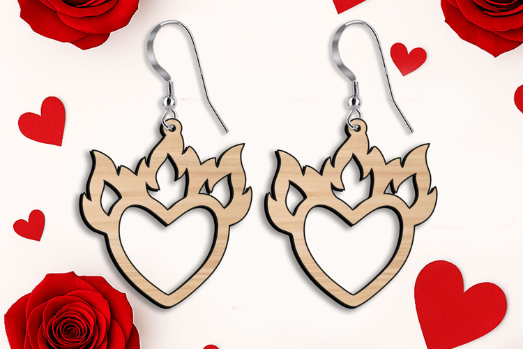 SVG Heart on Fire Cut Out Earring Laser Valentine Love Gift