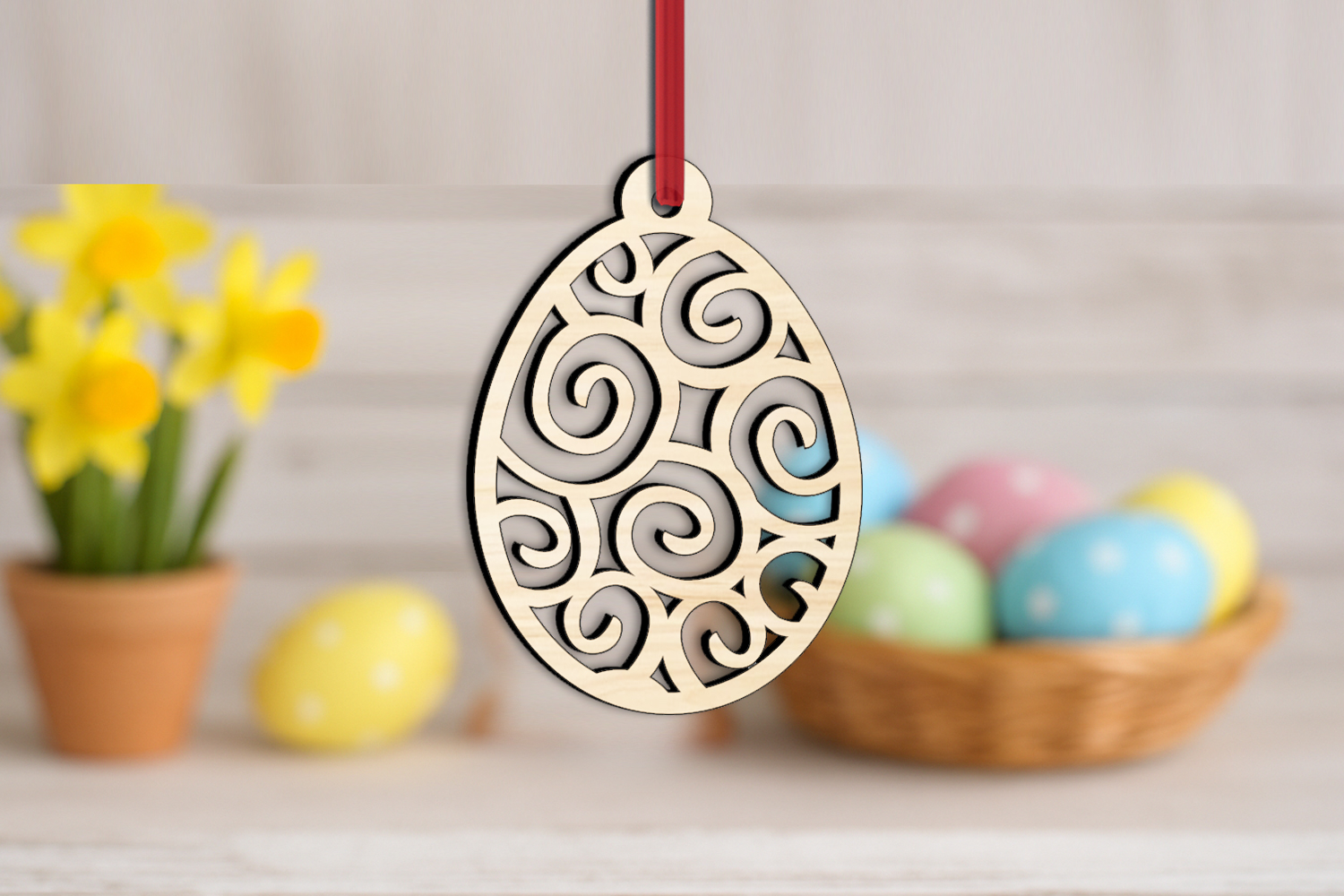 This great laser cut Easter Tag Ornament in the shape of a Egg with swirl elements inside is a remarkable Holiday Present!