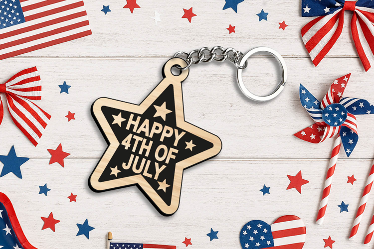 Star Engraved Happy 4th July Keychain Laser SVG Gift Present