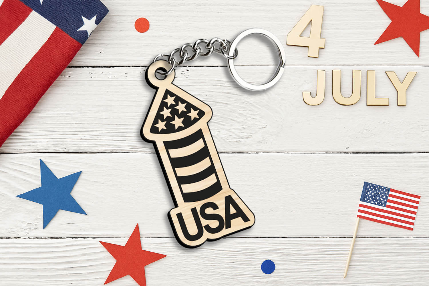 Freedom Fireworks 4th July Keychain Laser SVG Gift Present example image 1
