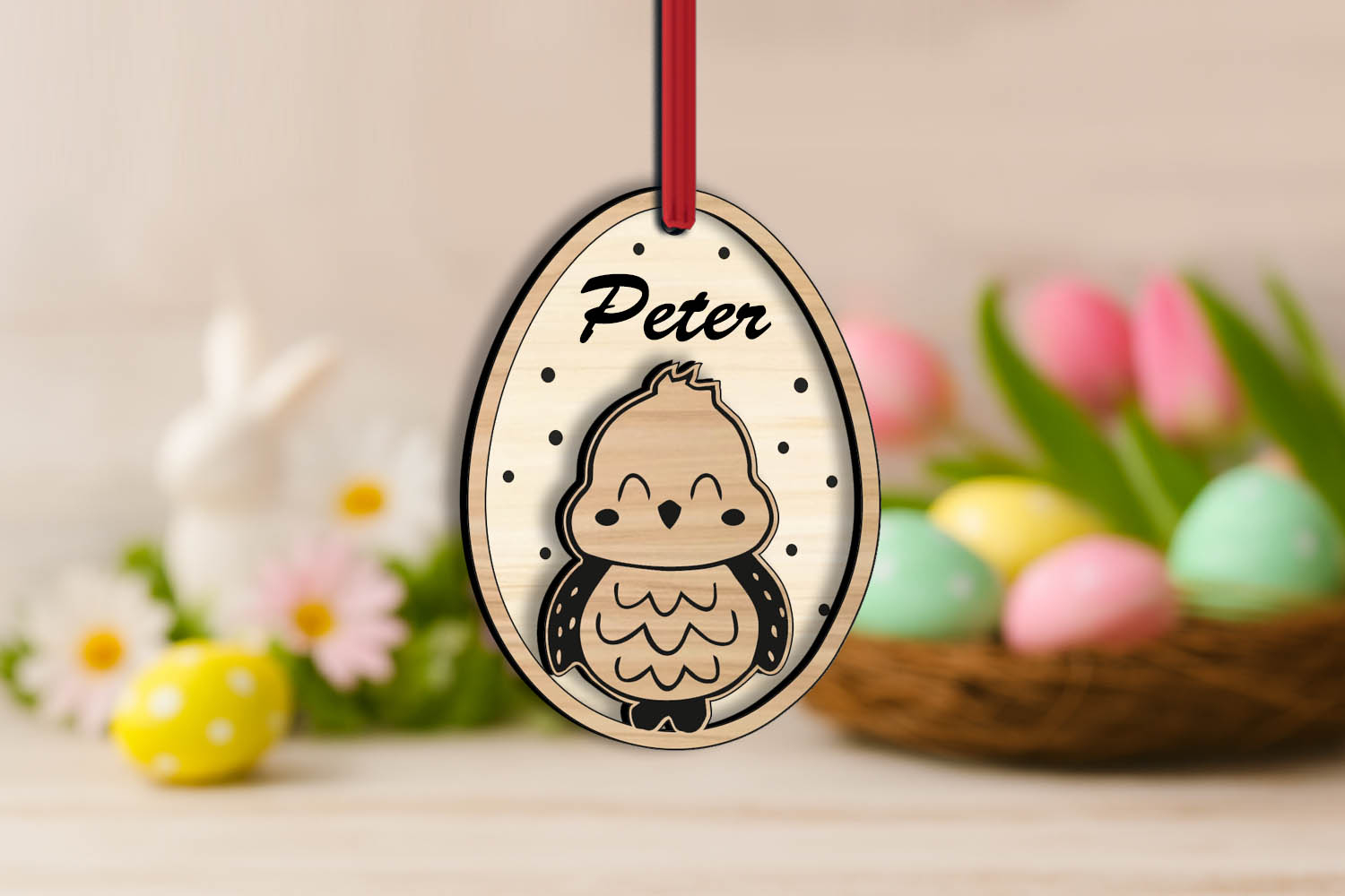 This remarkable laser cut Easter Egg Chicken / chick Name Tag Ornament is a great Holiday Present! Different colors, hues and shades can be achieved by paints, wood stain and others coloring materials.