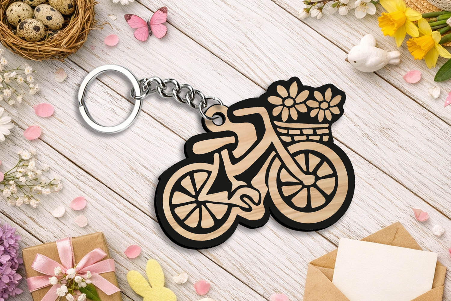 Spring Bicycle Bike Keychain Laser SVG Gift Accessory Easter example image 1