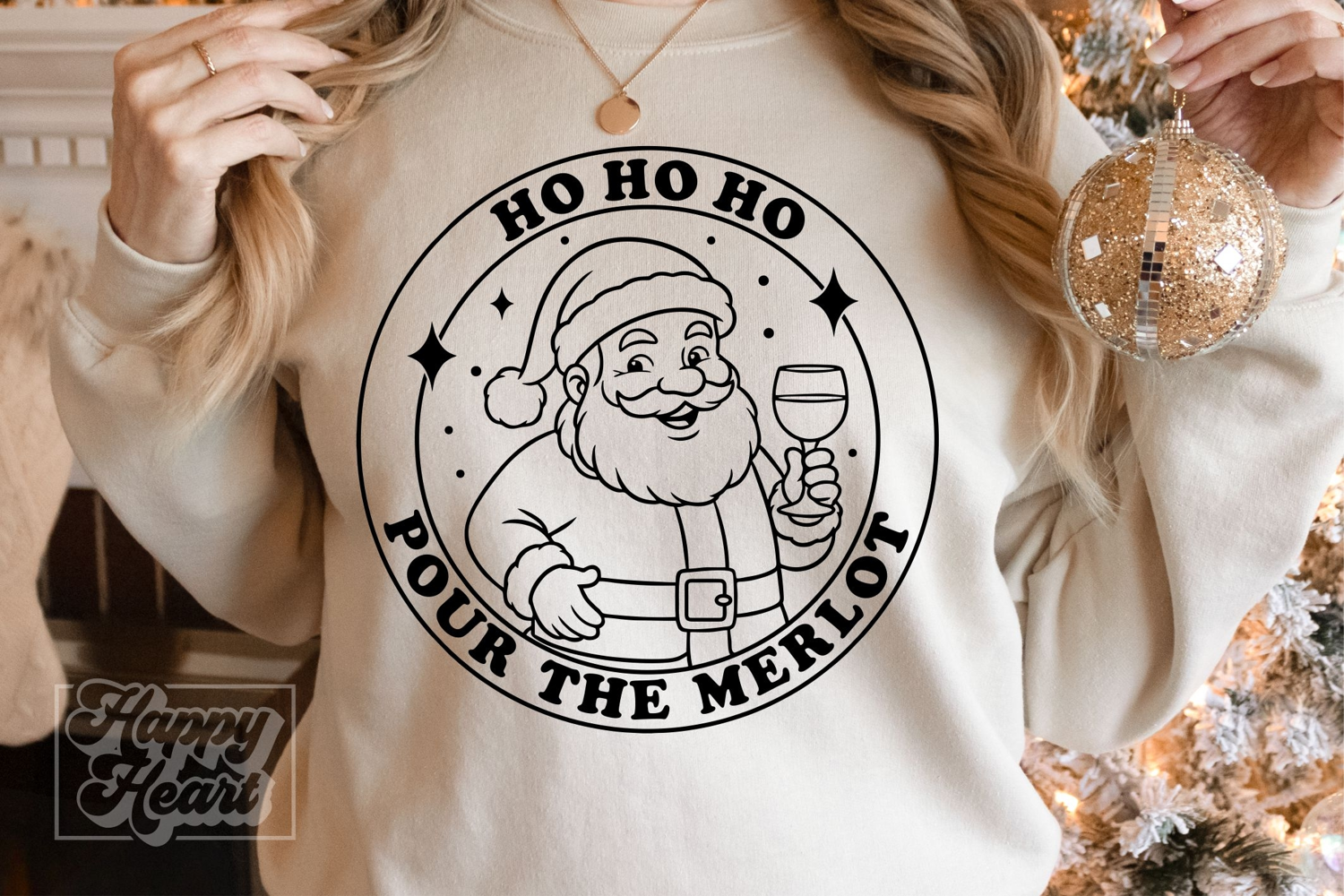 Ho Ho Ho Pour The Merlot - Santa Wine Club Christmas SVG PNG example image 1