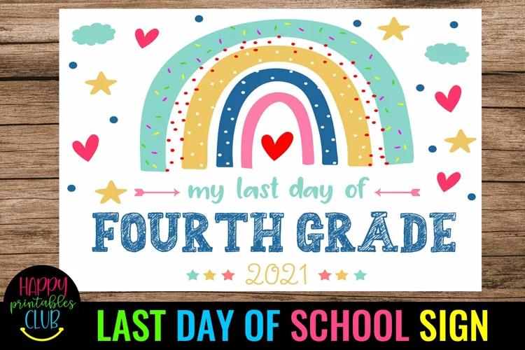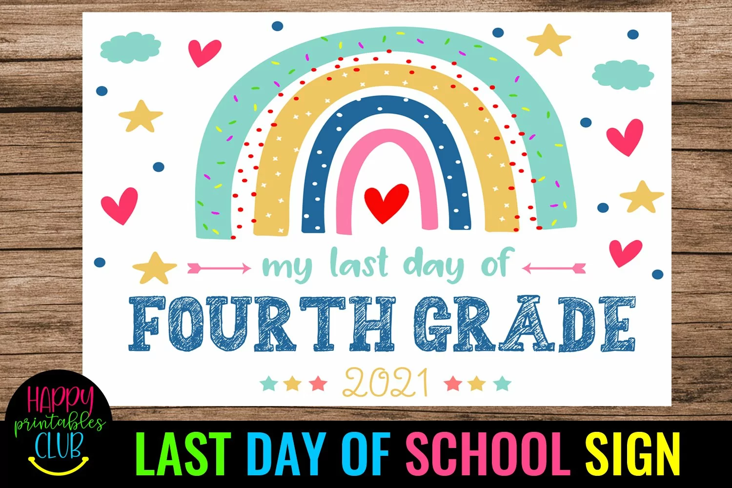 My Last Day of Fourth Grade Sign- Rainbow End of School Sign