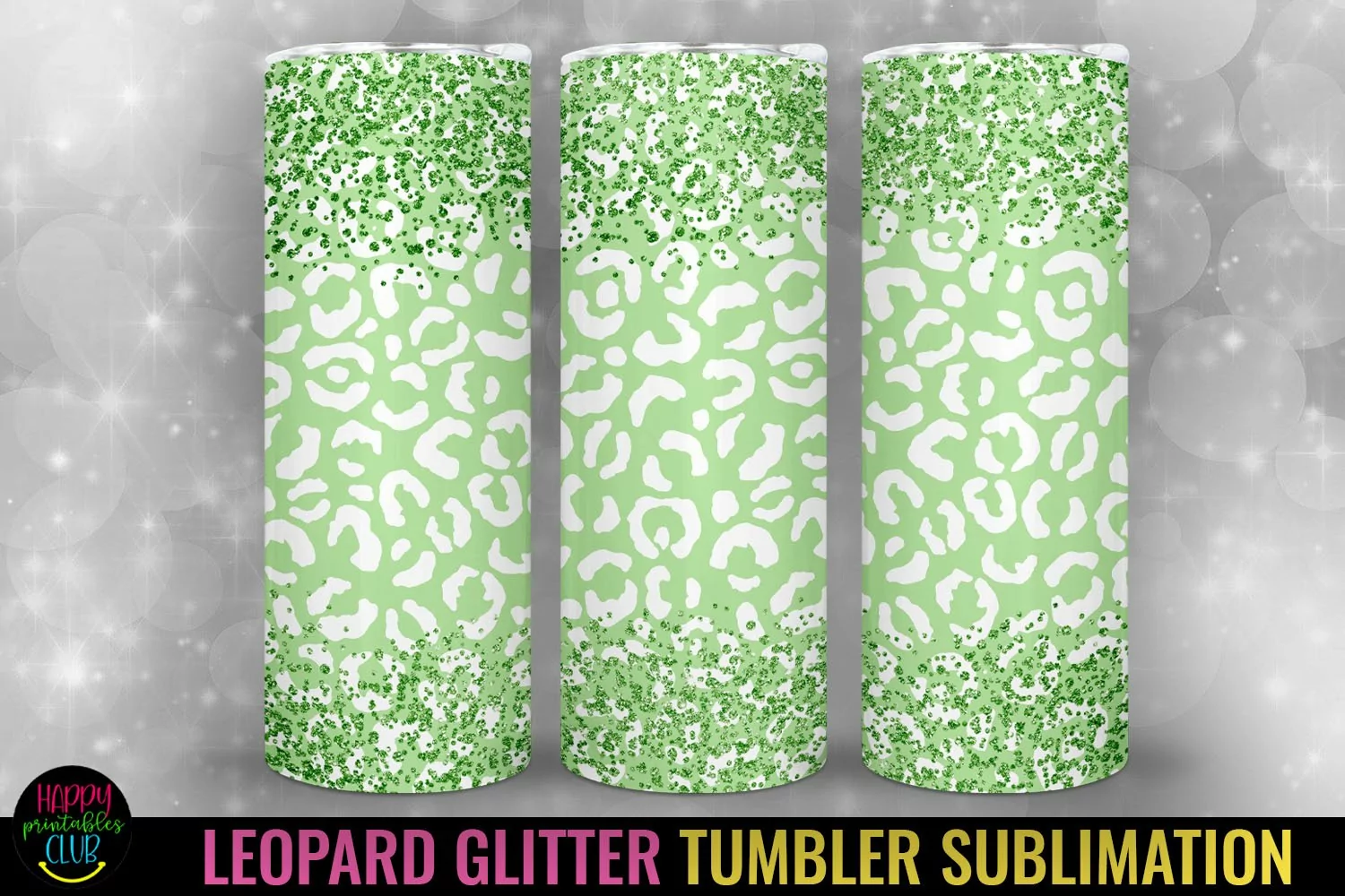 Green Leopard Glitter Tumbler Sublimation I 20 Oz Tumbler Wrap PNG