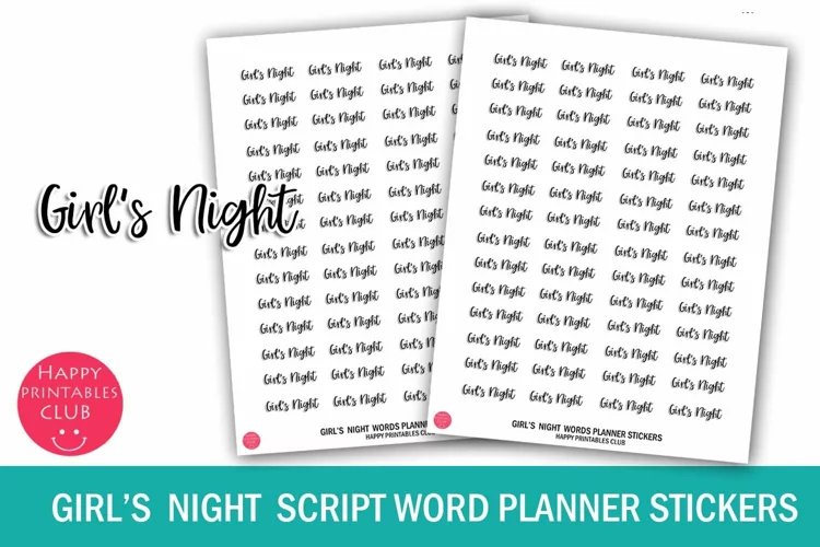 These are cute Girl's Night Script Words Planner Stickers- Girl's Night Planner Stickers which are perfect for your planners/journals/notebooks/calendars/to do lists and more.