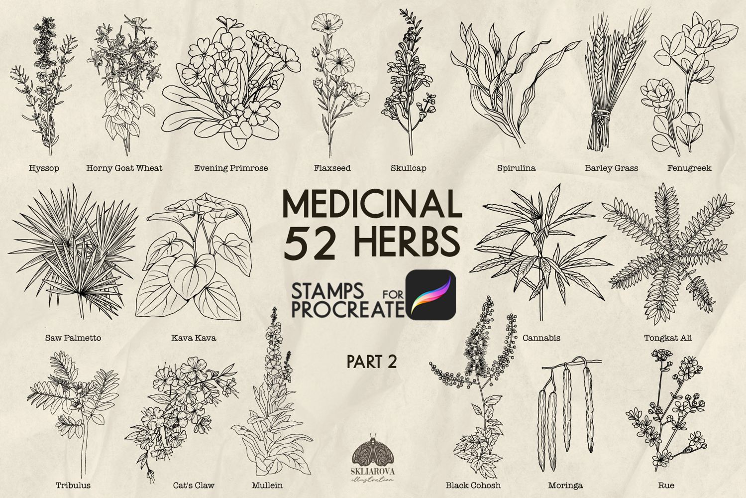 Medicinal Herbs Floral Brushes Floral Stamp Brushes Procreate Stamp Brushes Phytotherapy Botanical Stamps Botanical Procreate Stamps For Procreate Medicinal Herbs Illustration Plants Procreate