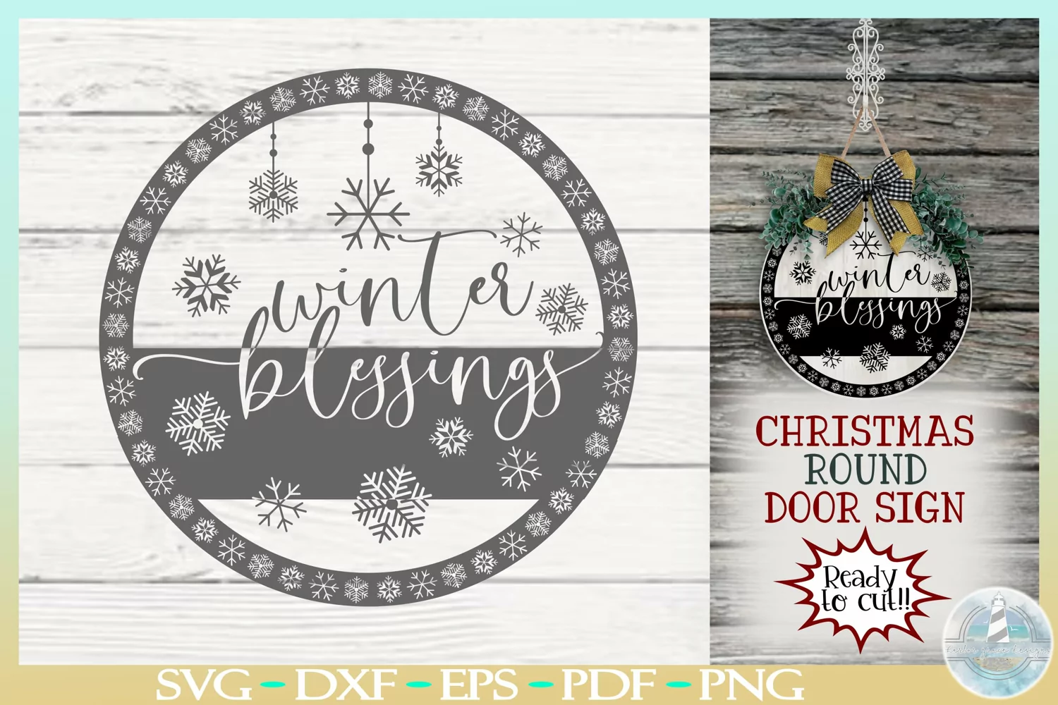 Winter Blessings Quote | Christmas Front Door Round Sign example image 1