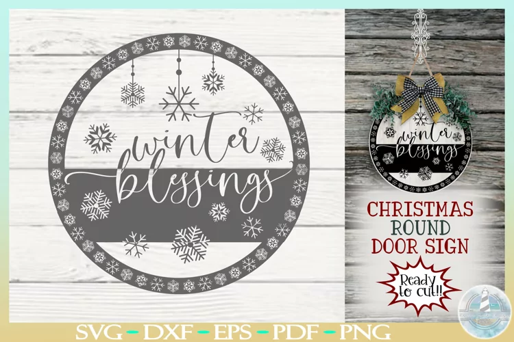 This listing includes the 'Winter Blessings Quote | Christmas Front Door Round Sign' - an exclusive bundle of designs by Harbor Grace Designs (formerly SVGcraze).