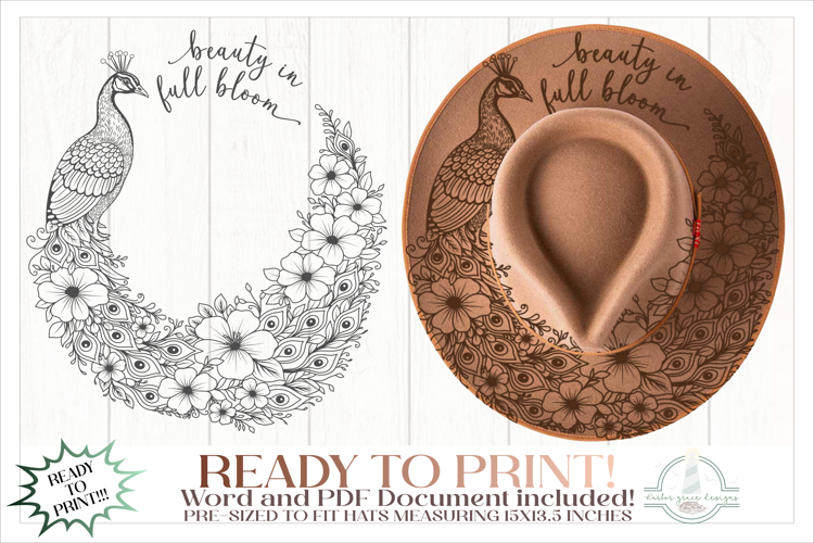 This listing includes the ‘Peacock Hat Burning Design - For Pyrography' by Harbor Grace Designs.
