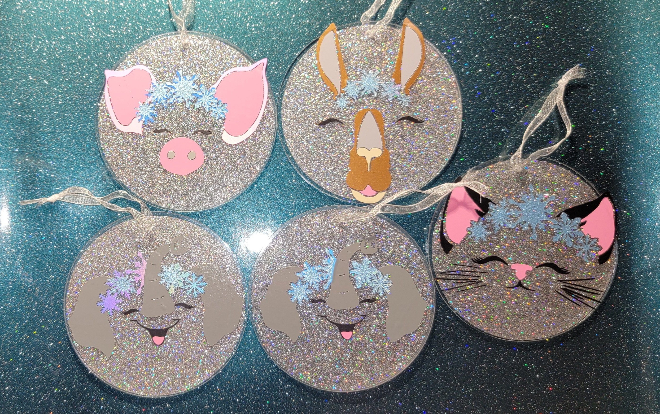 This listing includes the ‘Smiling Animal Faces Snowflakes SVG Bundle' by Harbor Grace Designs.