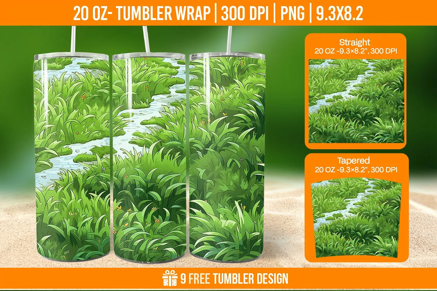 Grass Tumbler Wrap Designs, Sublimation Wrap example image 1