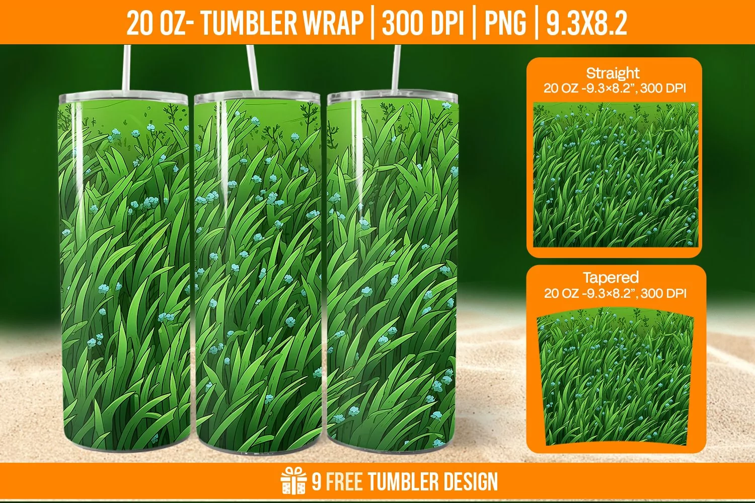 Grass Tumbler Wrap Designs, Sublimation Wrap