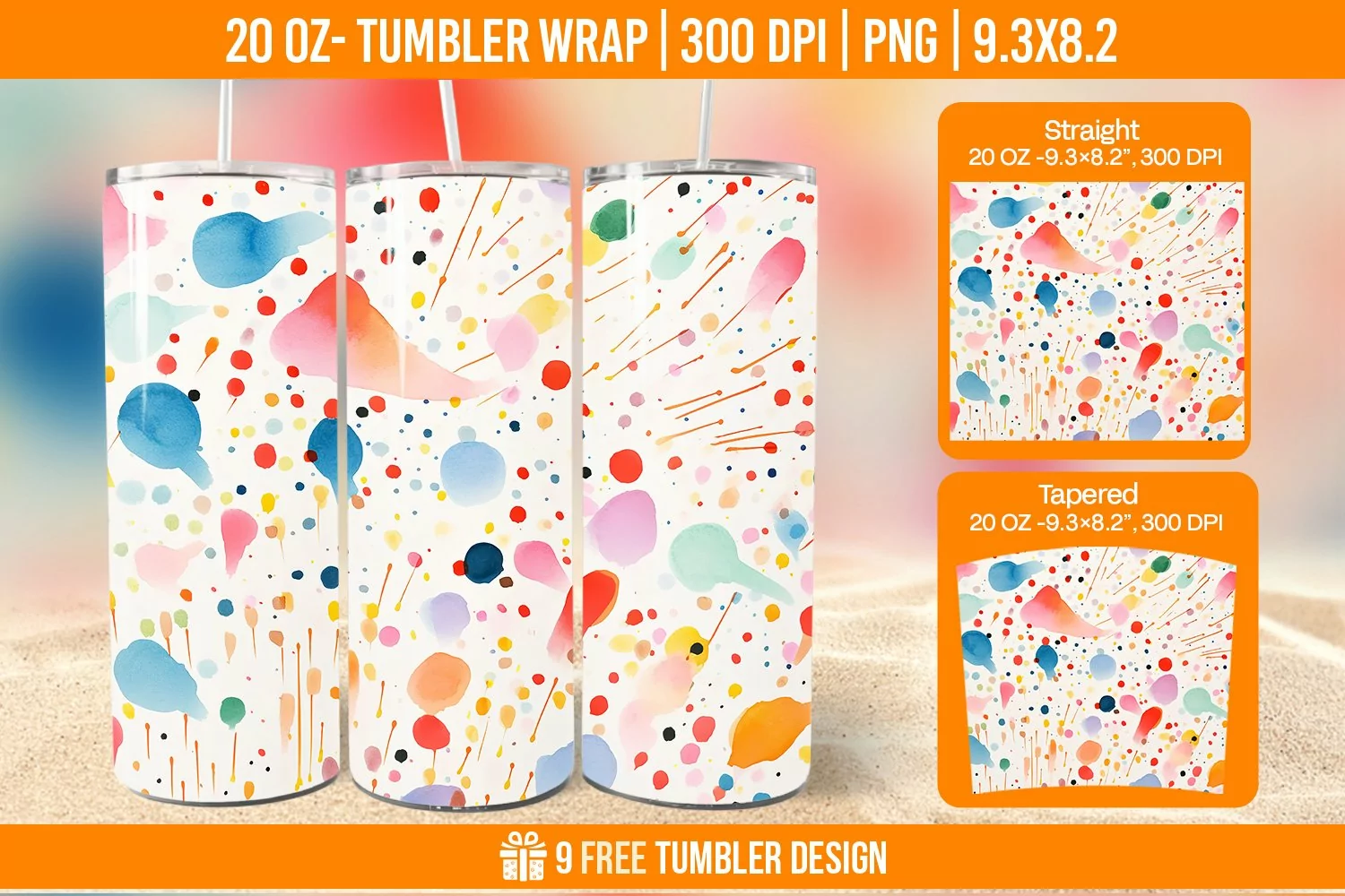Confetti Tumbler  Wrap Designs, Sublimation Wrap| 3D Tumbler Wrap PNG | Full Wrap Design | Digital Download PNG