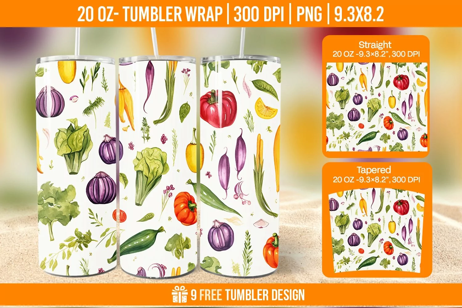 Vegetable Tumbler Wrap Designs, Sublimation Wraps| 3D Tumbler Wrap PNG | Full Wrap Design | Digital Download PNG