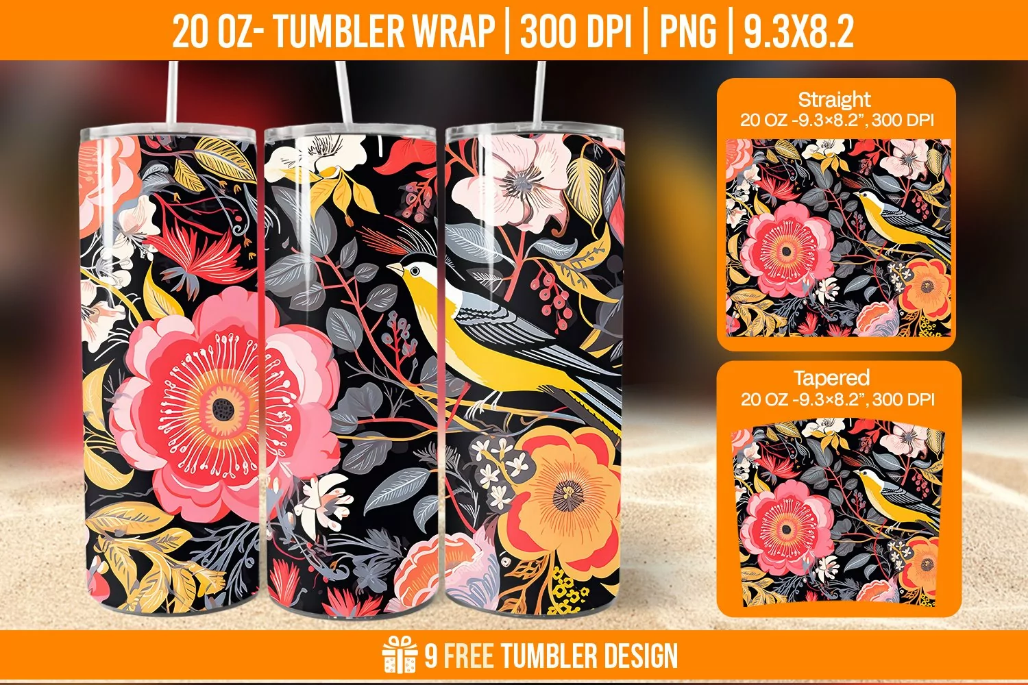 Sparrow Tumbler Wrap Designs, Sublimation Wrap example image 1