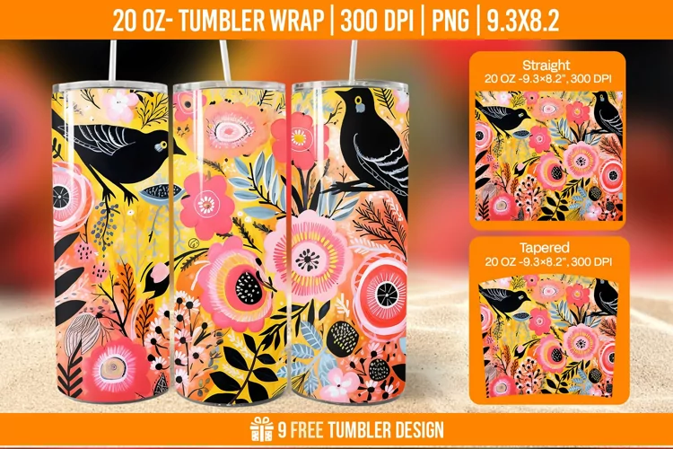 Sparrow Tumbler Wrap Designs, Sublimation Wrap