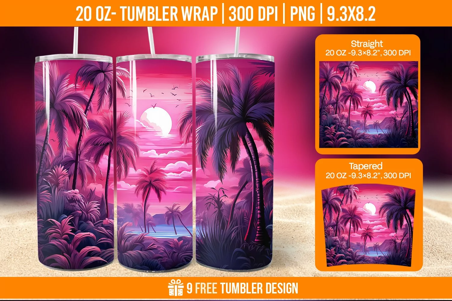 ✔️ Straight 20oz Tumbler Wrap - 9.3x8.2”, 300 DPI
