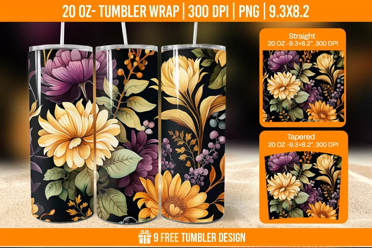 Flowers Tumbler Wrap Designs, Sublimation Wrap