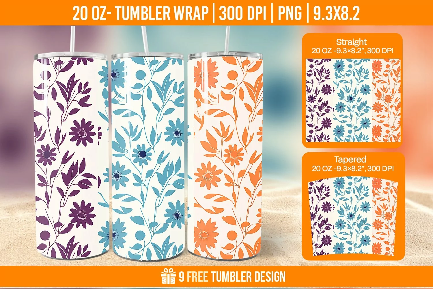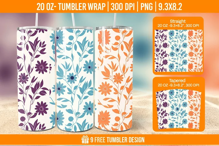 Flowers Tumbler Wrap Designs, Sublimation Wrap