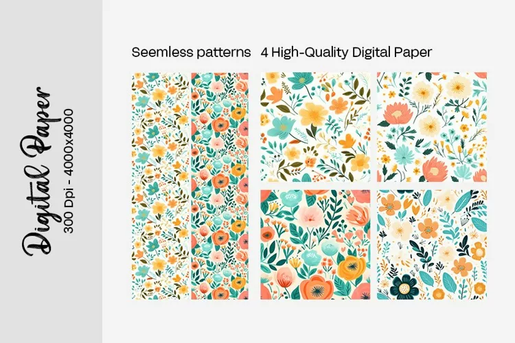seafloral digital paper, seamless patterns, scrapbooking, crafts, design, flowers, floral patterns, digital paper pack, hand-painted, DIY projects, invitations, high resolution, downloadable, patterns