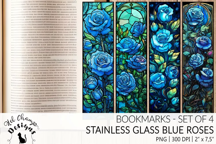 Sublimation Flowers Floral Digital Bookmarks Stainless Floral Bookmark Bookmark Flowers Glass Floral Bookmarks Sublimation Bookmark Png Flowers Printable For Book Lovers Stainless Glass Design Blue Roses Flowers Scrapbooking Blue Roses