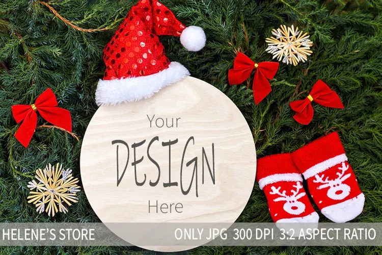 Christmas Mockup Photo Mockup Wood Sign Mockup Round Wood Sign Mockup Round Sign Mockup Wood Round Sign Round Door Signs Wood Round Door Sign Stock Photo Mockup Christmas Mock Mockup