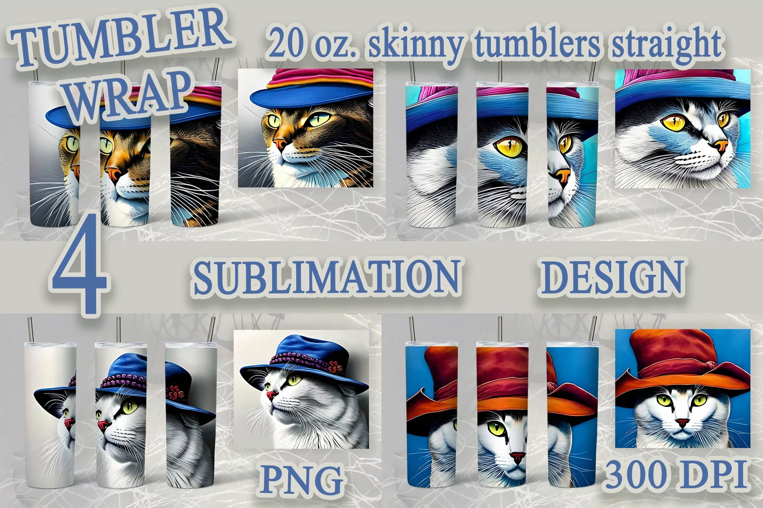 cat sublimation tumbler wrap. 4 designs