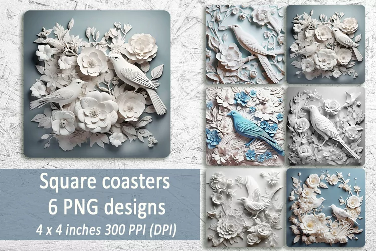Similar Design Products to 3D birds Square Coasters | Coaster Sublimation design bundle