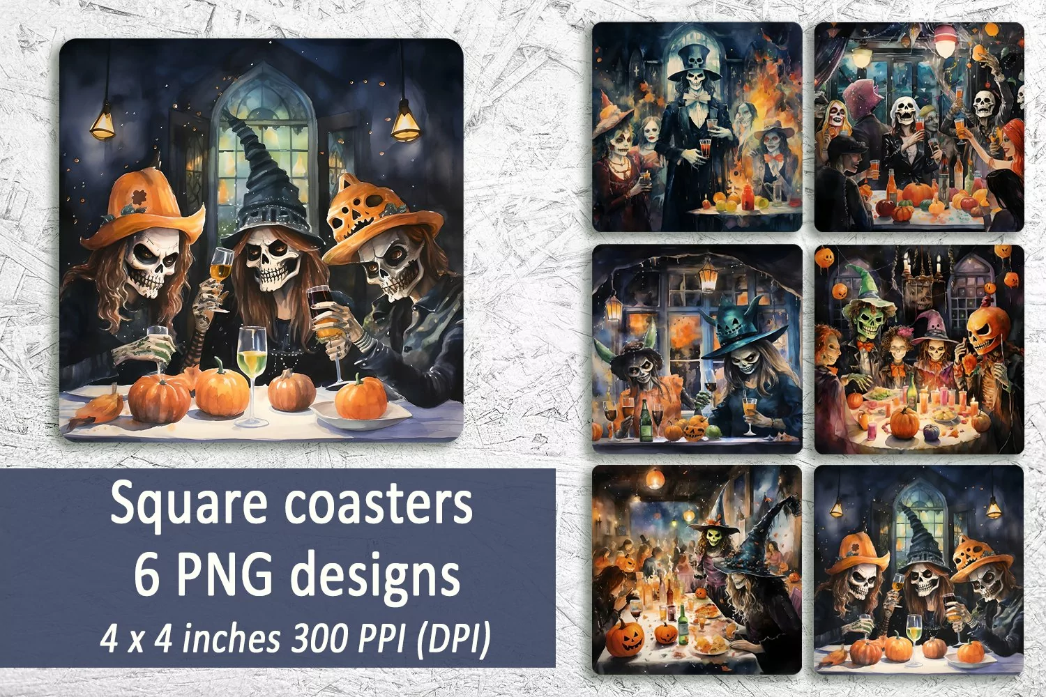 Similar Design Products to Halloween square Coasters bundle |Square coaster design |PNG