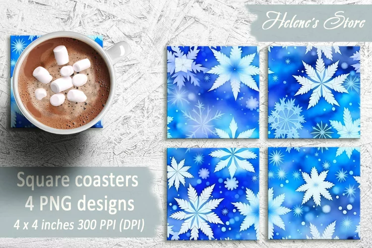 Blue Christmas Snowflakes Background Floral Winter Christmas Sublimation Winter Sublimation Blue Sublimation Christmas Winter Sublimation Sublimation Coaster Square Square Sublimation Coasters Coaster Square Sublimation