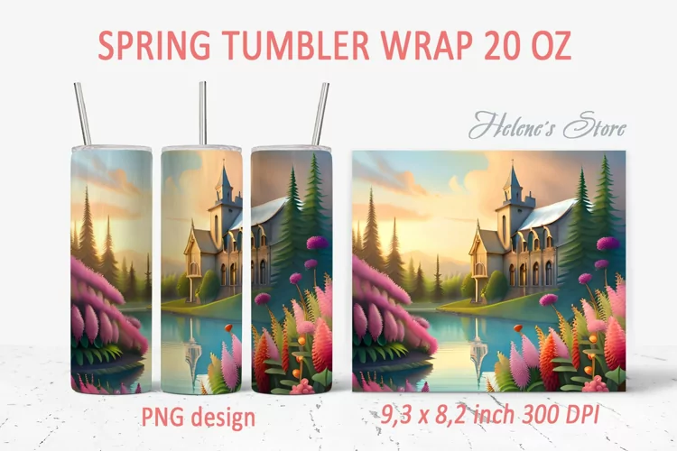 Spring Spring Flowers Springtime Tumbler Sublimation Tumbler Spring Landscape Skinny Tumbler 20 Oz Tumbler Wrap Design Skinny Tumbler Spring Spring Lake