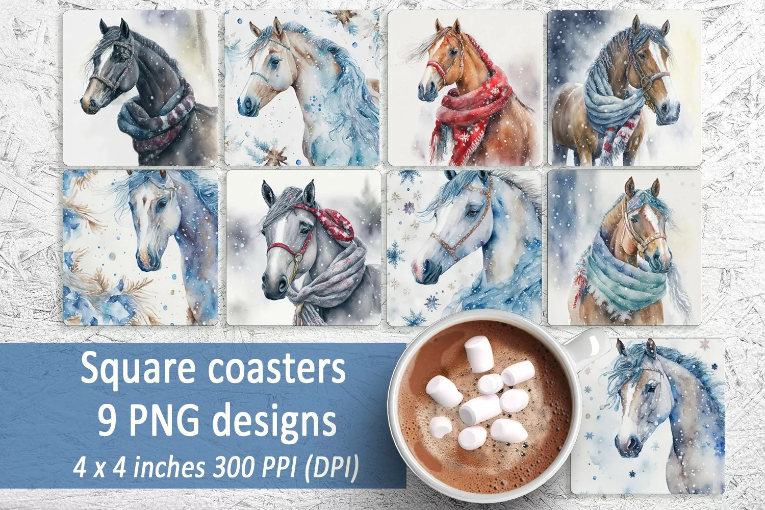 Christmas horse coaster|Square coaster sublimation| Bundle example image 1