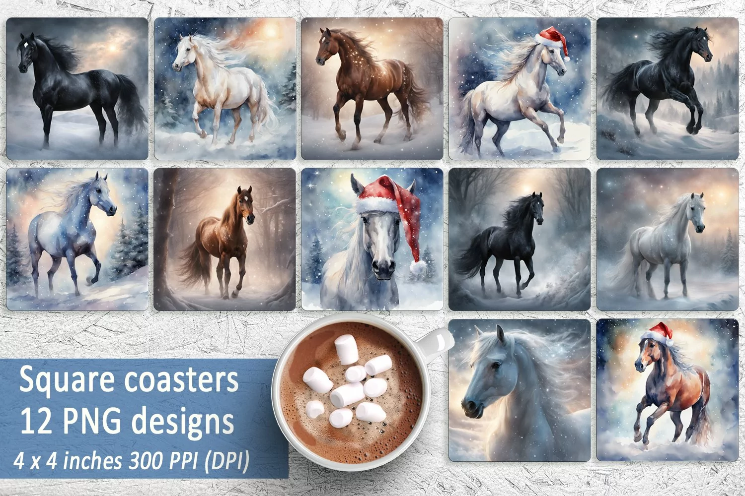 Christmas horse coaster|Square coaster sublimation| Bundle