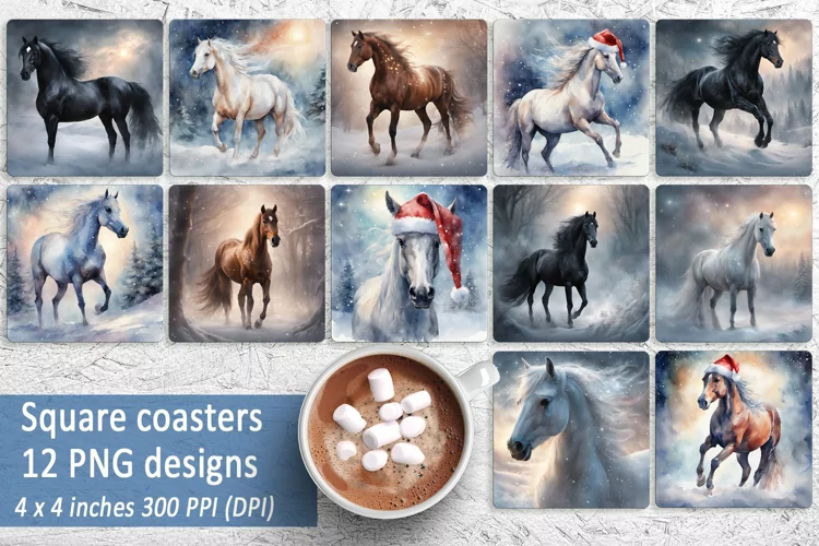 Coaster Christmas Horse Square Coasters Coaster Designs Christmas Horse Sublimation Coaster Sublimation Christmas Coaster Sublimation Winter Horse Christmas Coaster Png Square Christmas Coasters