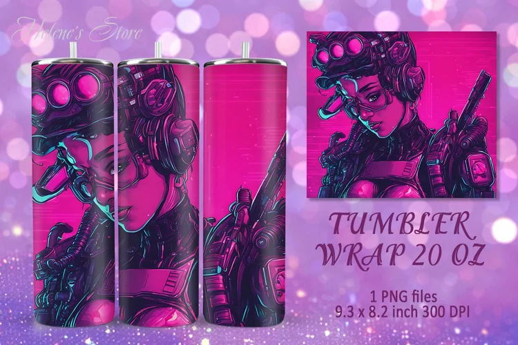 Neon Pink cyberpunk girl Valentine tumbler wrap sublimation