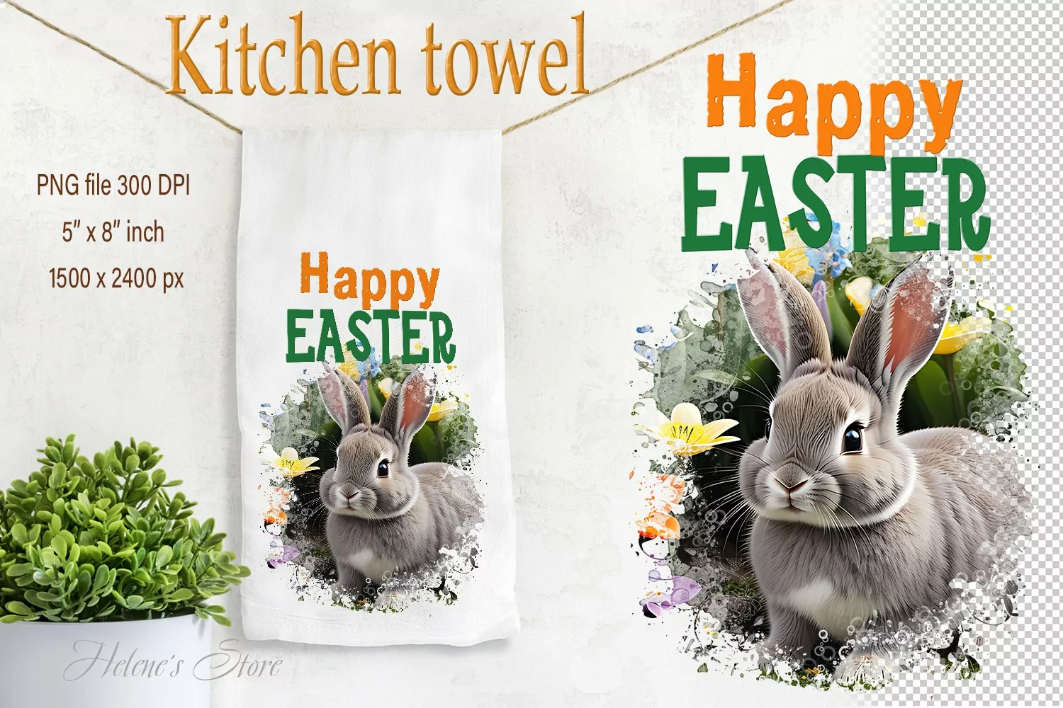 Easter bunny sublimation kitchen tea towel | Happy Easter