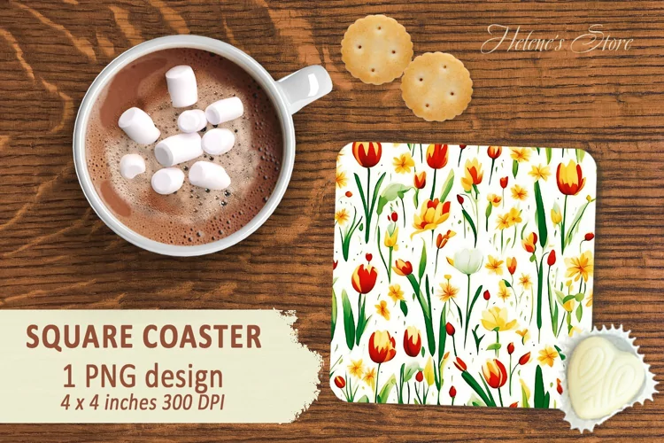 Coaster Flower Sublimation Coaster Designs Square Coaster Coaster Sublimation Floral Coaster Flower Coaster Coasters Sublimation Design Spring Flowers Square Coasters Springtime Square Coasters