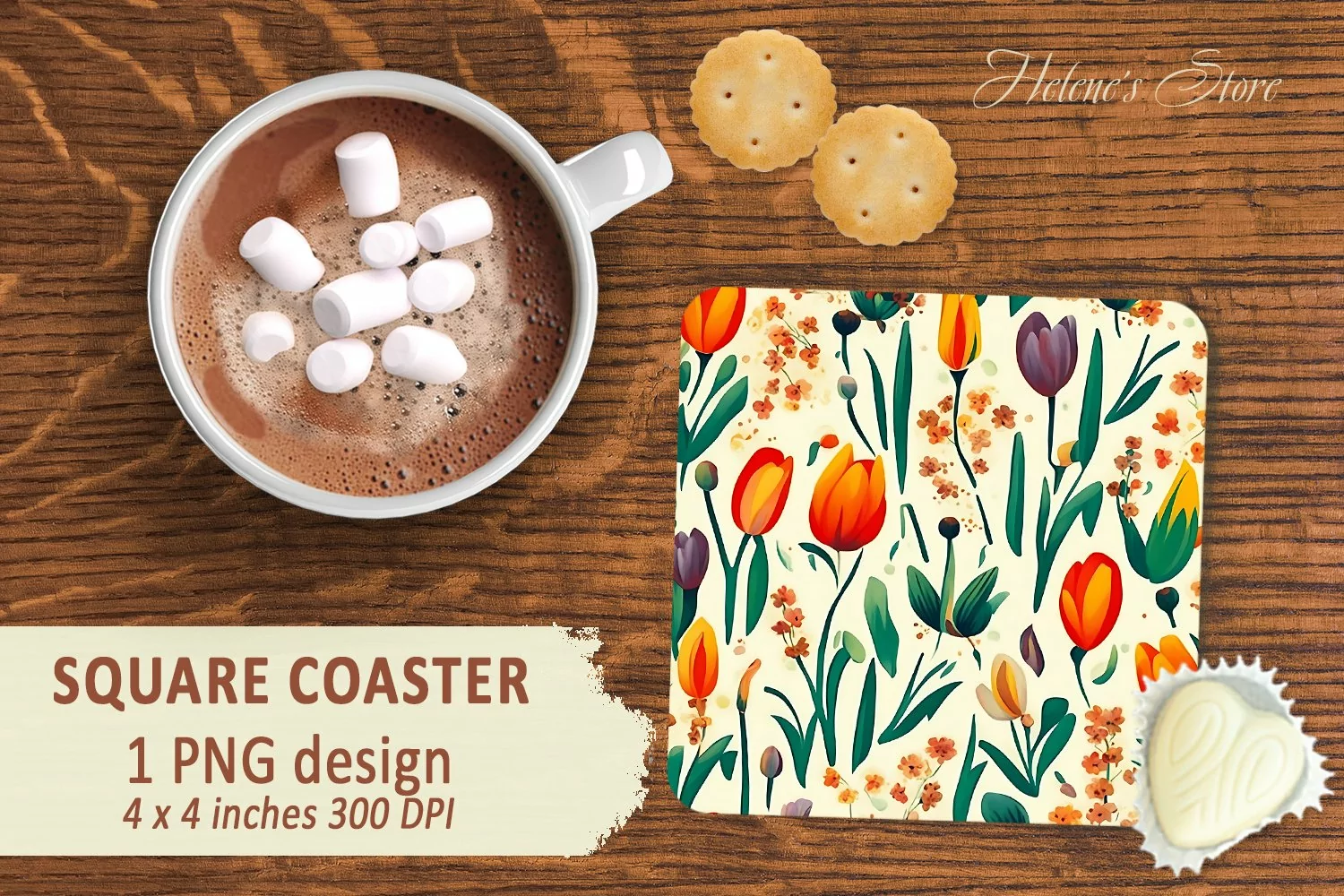 Coaster Flower Sublimation Coaster Designs Square Coaster Coaster Sublimation Floral Coaster Flower Coaster Coasters Sublimation Design Spring Flowers Square Coasters Springtime Square Coasters