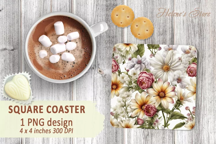 Floral bouquet square coasters | Coaster square sublimation