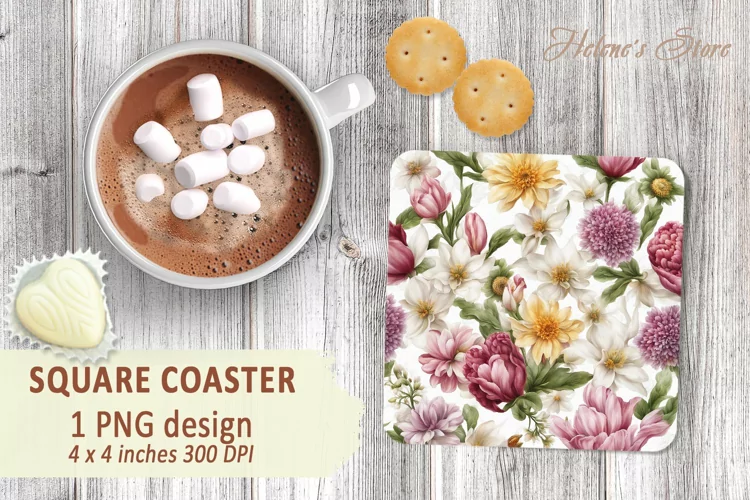 Spring flowers pattern square Coasters.Floral Sublimation Coaster Designs png