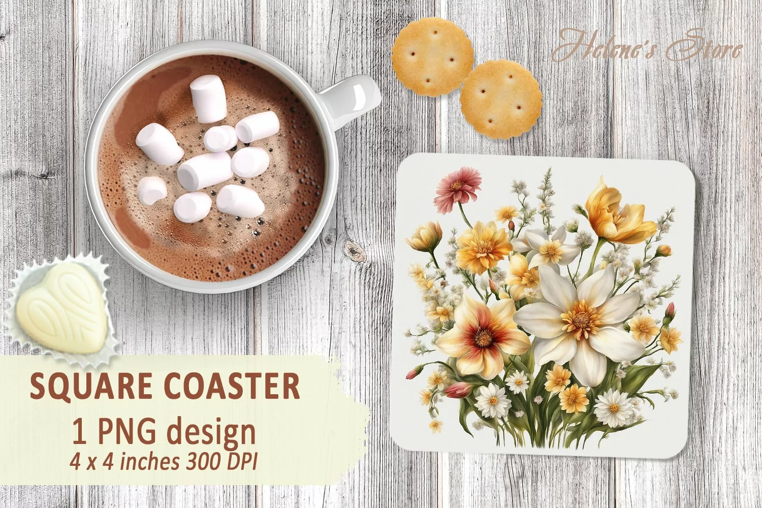 Coaster Flower Sublimation Coaster Designs Coaster Sublimation Floral Coaster Flower Coaster Coasters Sublimation Design Spring Flowers Square Coasters Bouquet Florals Springtime Square Coasters