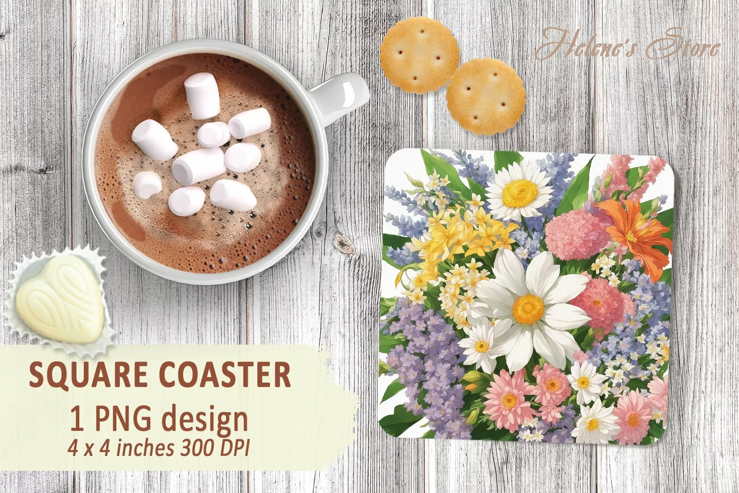 Wildflowers bouquet square coasters sublimation design PNG example image 1