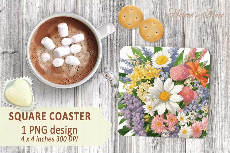 Coaster Flowers Bouquet Flower Sublimation Coaster Designs Coaster Sublimation Floral Coaster Flower Coaster Coasters Sublimation Design Spring Flowers Square Coasters Bouquet Florals