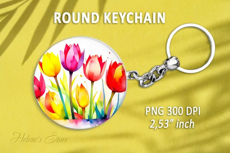 Watercolor Flowers Tulip Sublimation Designs Car Coaster Sublimation Keychain Sublimation Round Keychain Floral Keychain Keyring Sublimation Flowers Keychain Flower Car Coaster