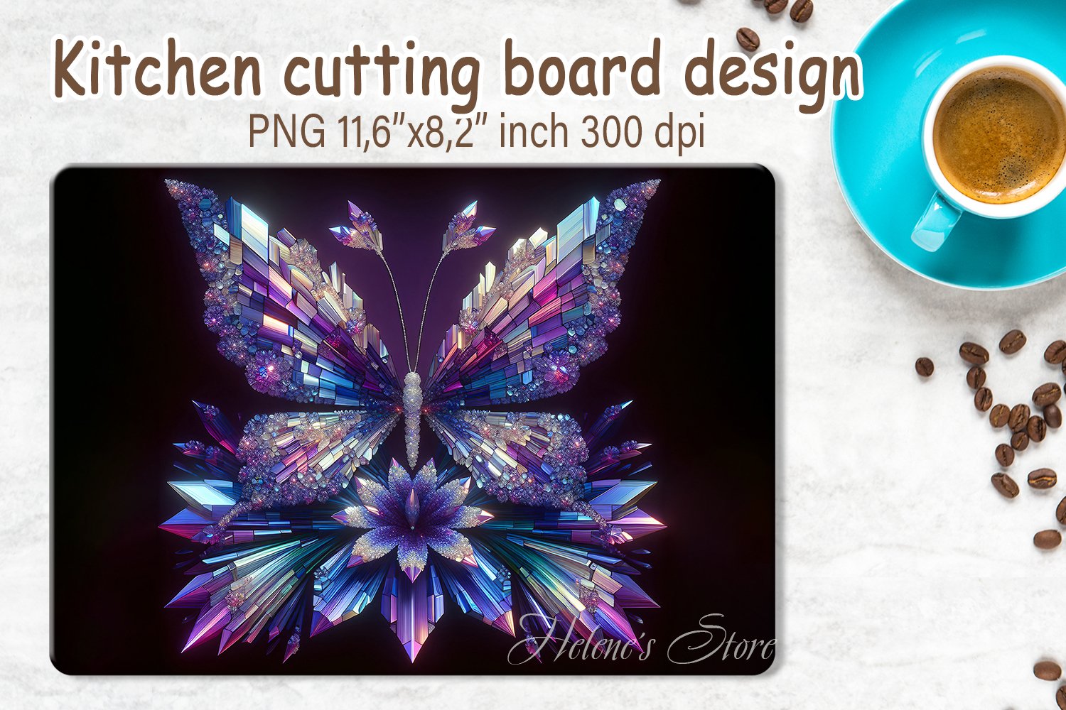 Crystal butterfly abstract on flower Sublimation Designs png for kitchen cutting glass board