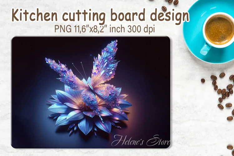 Crystal butterfly abstract on flower Sublimation Designs png for kitchen cutting glass board