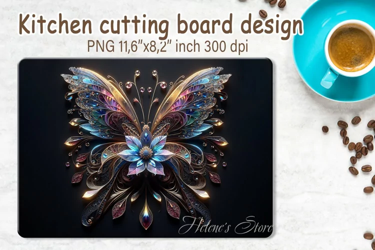 Crystal butterfly abstract on flower Sublimation Designs png for kitchen cutting glass board. flowers and butterfly